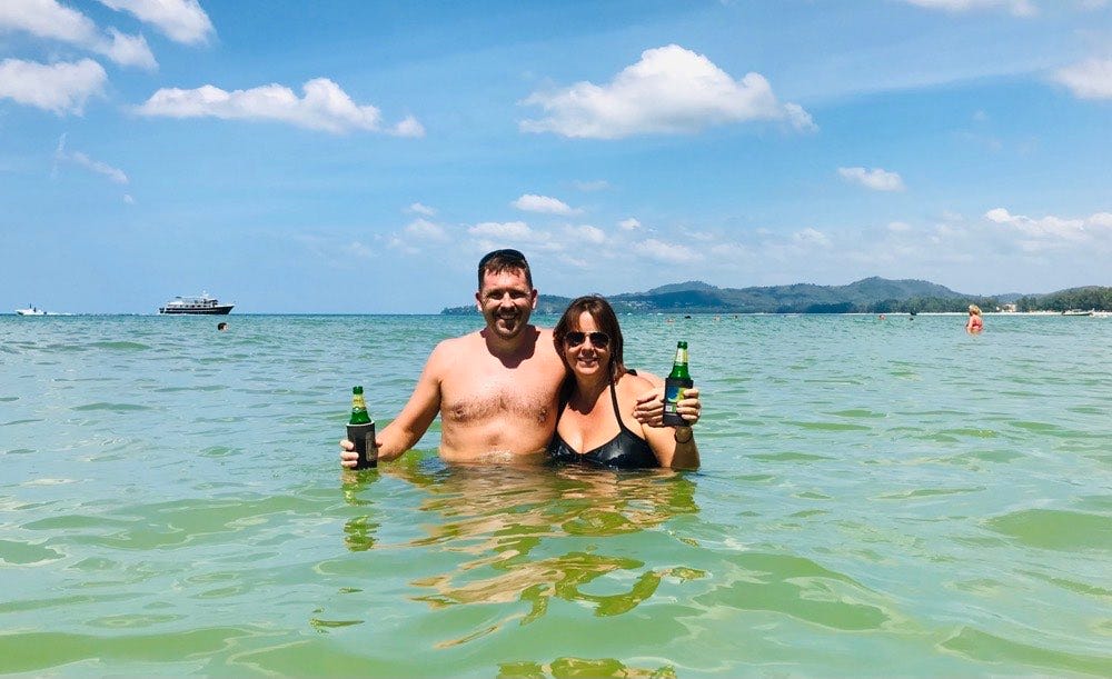 My husband & I were floating in the Andaman Ocean, cold Chang beers in hand, watching the sun set over limestone cliffs.