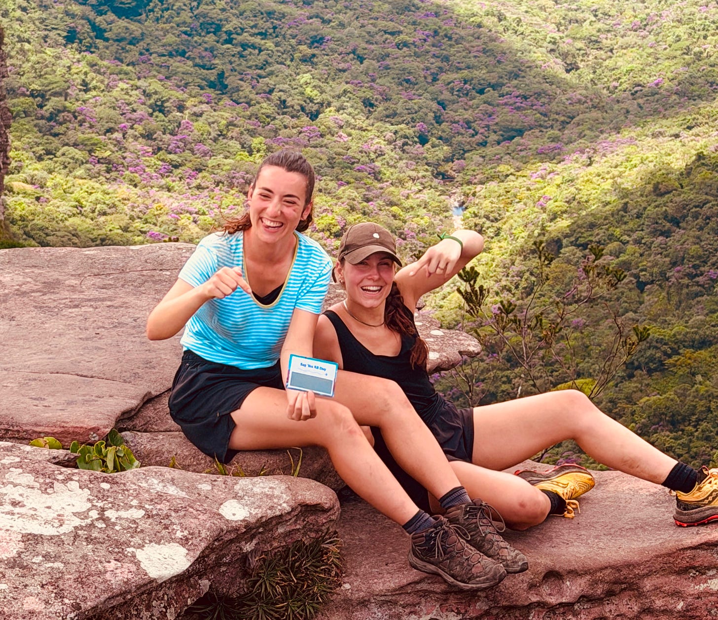 So we convinced a couple of the girls to hold one of our travel challenge cards and pose on it instead! (Theyâre young and fearless!)