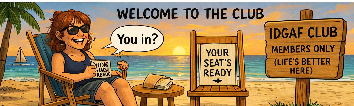 The IDGAF Club isn’t something you join in your 50s. For some of us it started decades ago. Your 50s just turned down the noise.