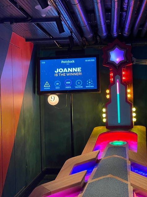 We had a fab day starting with a speedboat trip down the Thames, followed by a Taco Treasure Hunt around Shoreditch, 2 rounds of high tech mini golf in Bank, cocktails in the Sky Garden & dinner with show songs at the Theatre Cafe Diner Shaftesbury Avenue!