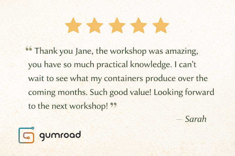 Jane now has something else that’s priceless: testimonials. She screenshots the lovely feedback and adds it to her Gumroad page.