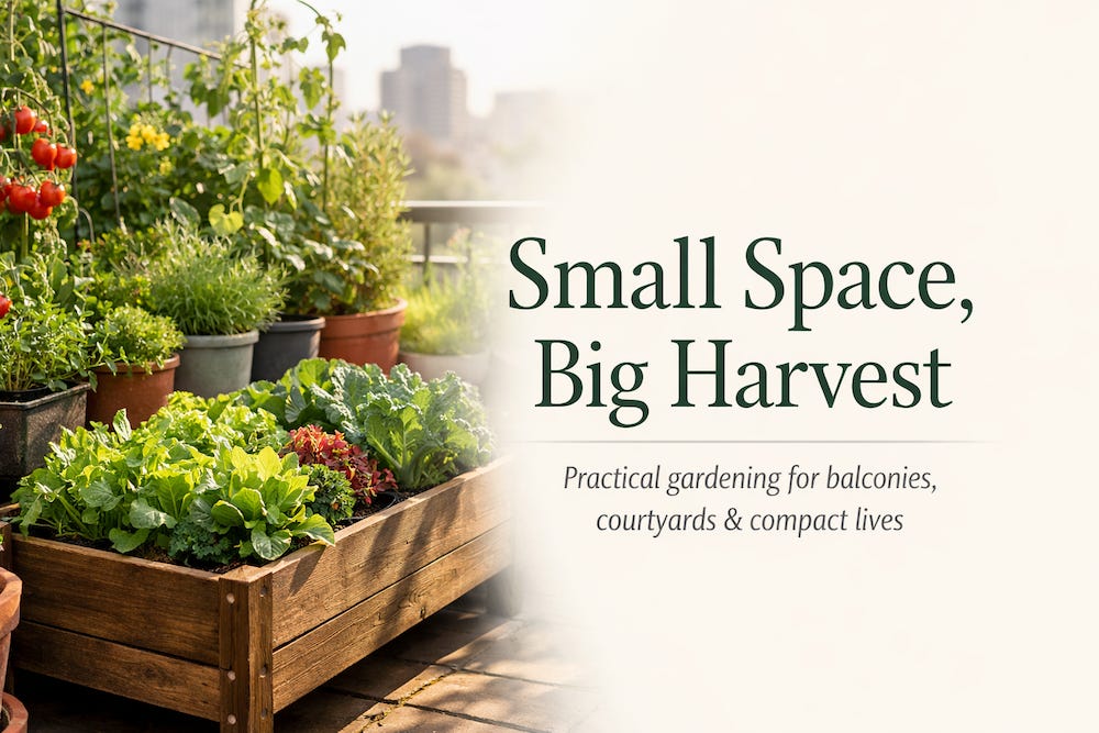 She writes about things she already knows: companion planting in pots, which vegetables actually thrive in containers, how to make the most of a north-facing courtyard.