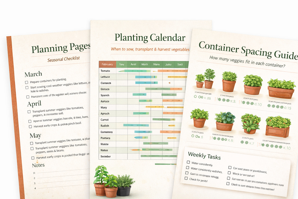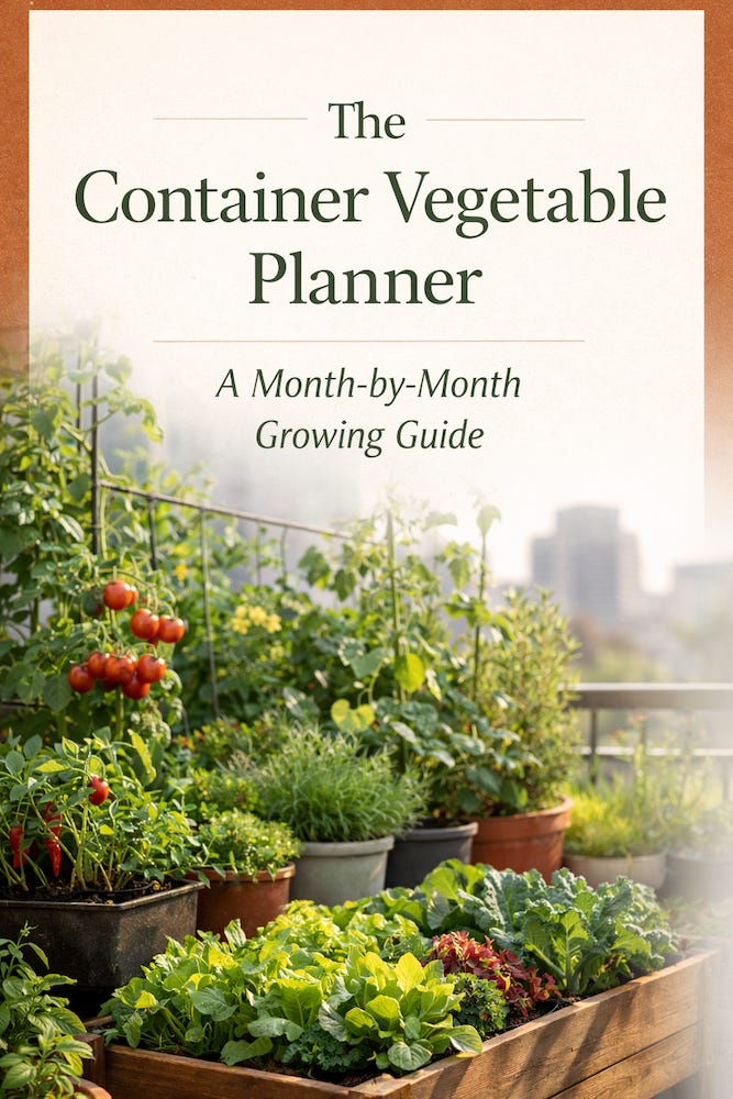 She spends a few weekends building a workbook in Canva: The Container Vegetable Planner: A Month-by-Month Growing Guide.
