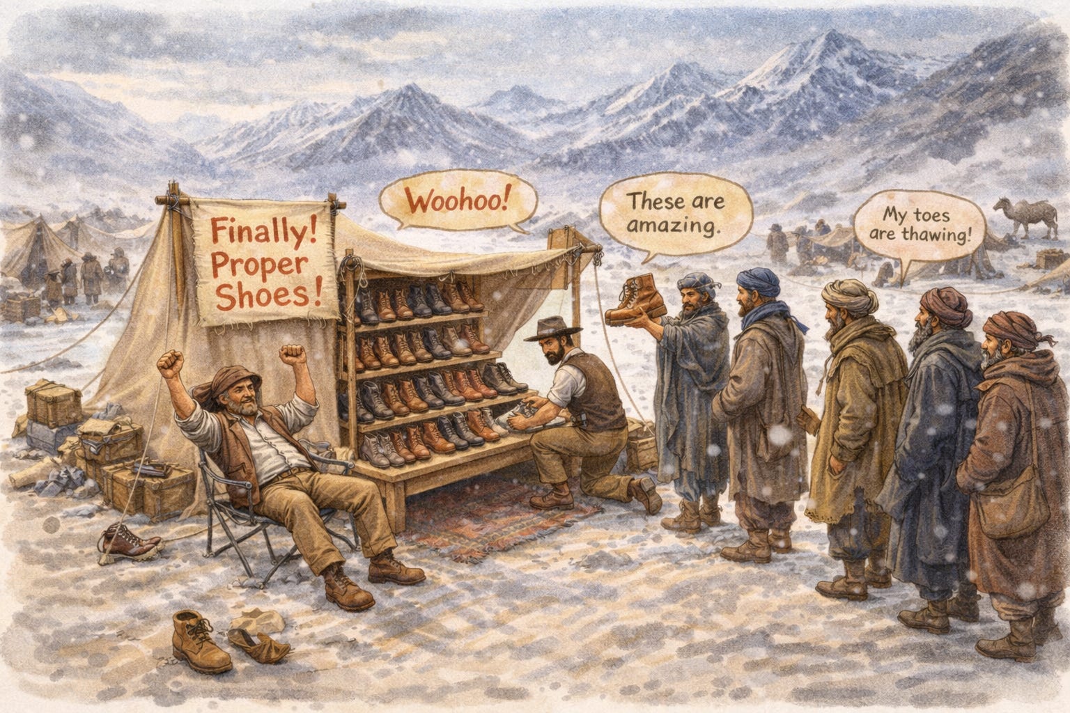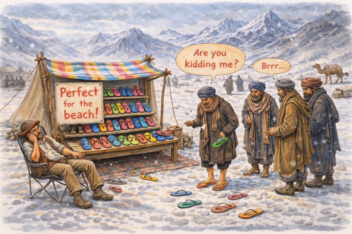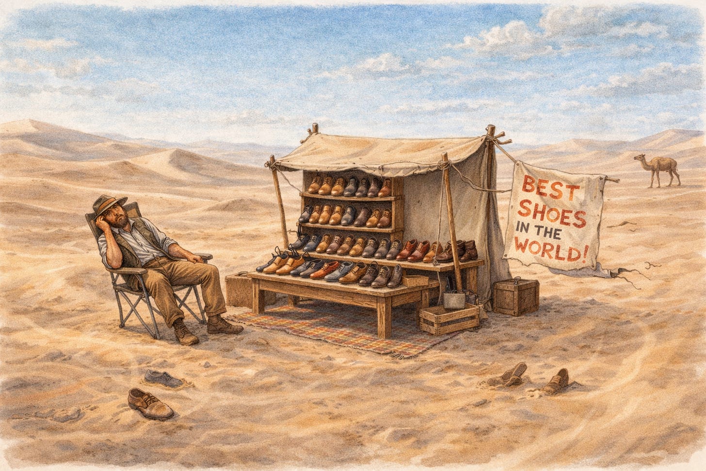 That feeling is far more common than you think. And it brings us right back to our little Bedouin camp. Because even inside the camp, surrounded by the right people, you can still struggle to sell your shoes if: