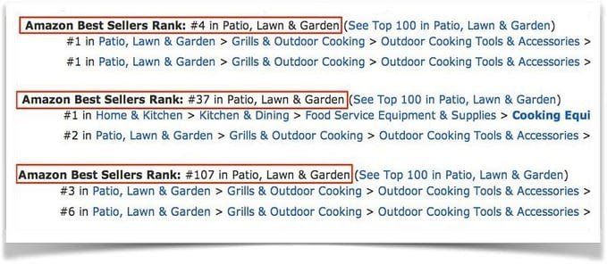 If you now click on each product and scroll down to the product details, you’ll see their respective BSR’s.