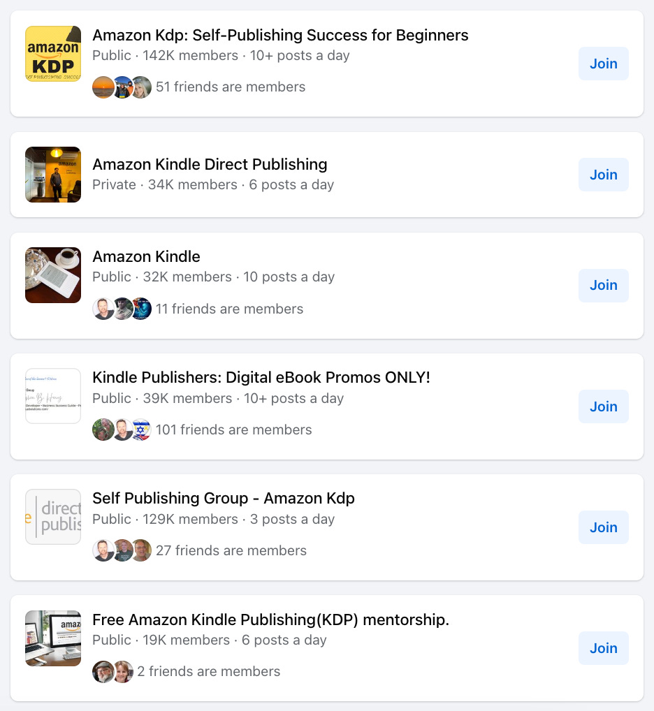 Want to sell books on Amazon KDP? Join FB groups specifically for Amazon kindle sellers.