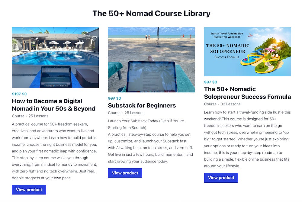 Subscribe to The 50+ Nomad Club to keep reading this post and get 7 days of free access to the full post archives.