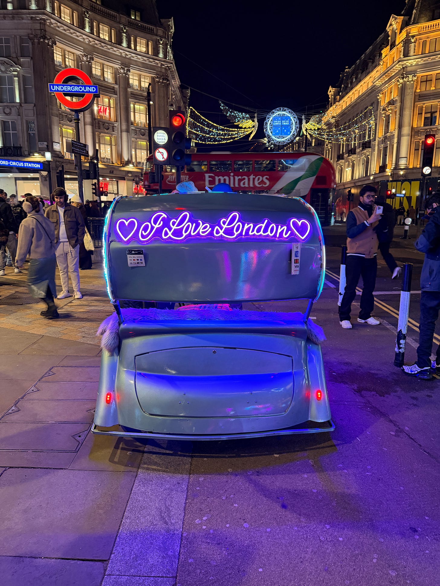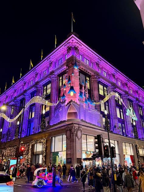 Christmas is always a magical time here. The light displays in Oxford Street, Regents Street, Carnaby & Bond Streets to name a few. The brightly lit bike taxis playing Christmas music as they go. The shop decorations, the dancing outside Hamleys, the story-filled windows of Selfridges, the massive advent calendar of Fortnum & Masons.
