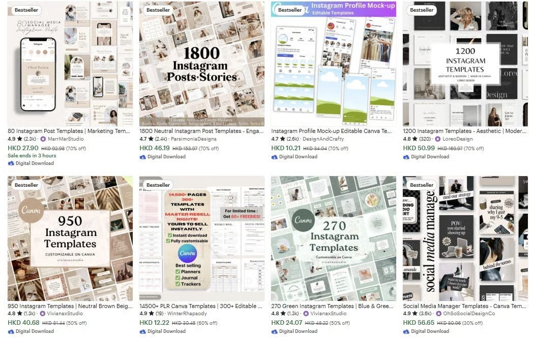 Canva templates are in high demand across industries. Think social media graphics, planners, business kits, journals, and more. Once created, they can be sold multiple times with no extra fulfilment, making them a favourite among digital product sellers and travel-friendly solopreneurs.