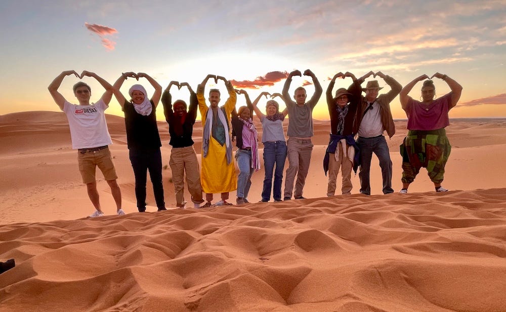 That night we had dinner and live Moroccan music. Suddenly our expert driver Saeed morphed into the band’s fifth member, clapping and drumming in perfect time with the band. Next thing you know we’re all up dancing, drumming, clapping.