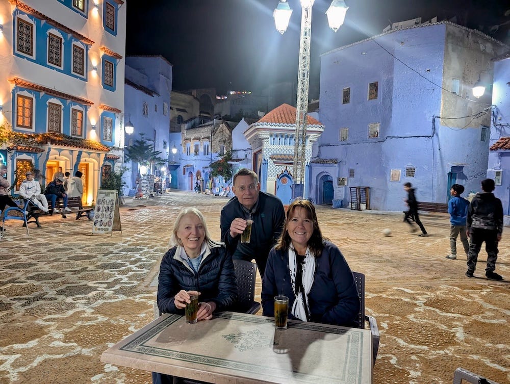We hiked up to the mosque for sunset, came back down, got gloriously lost in the blue alleyways, and eventually stumbled into a tiny square where we sat drinking mint tea under fairy lights.