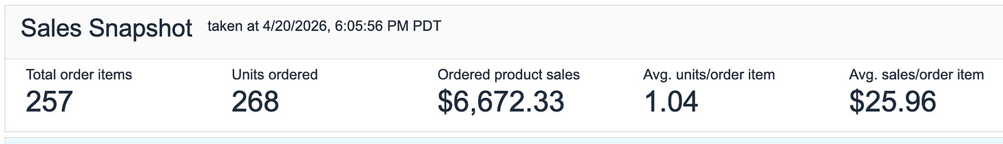 As of writing, I’ve done just over 260 sales. My profit margin is sitting around 27%, which for an Amazon ecommerce product is pretty impressive.