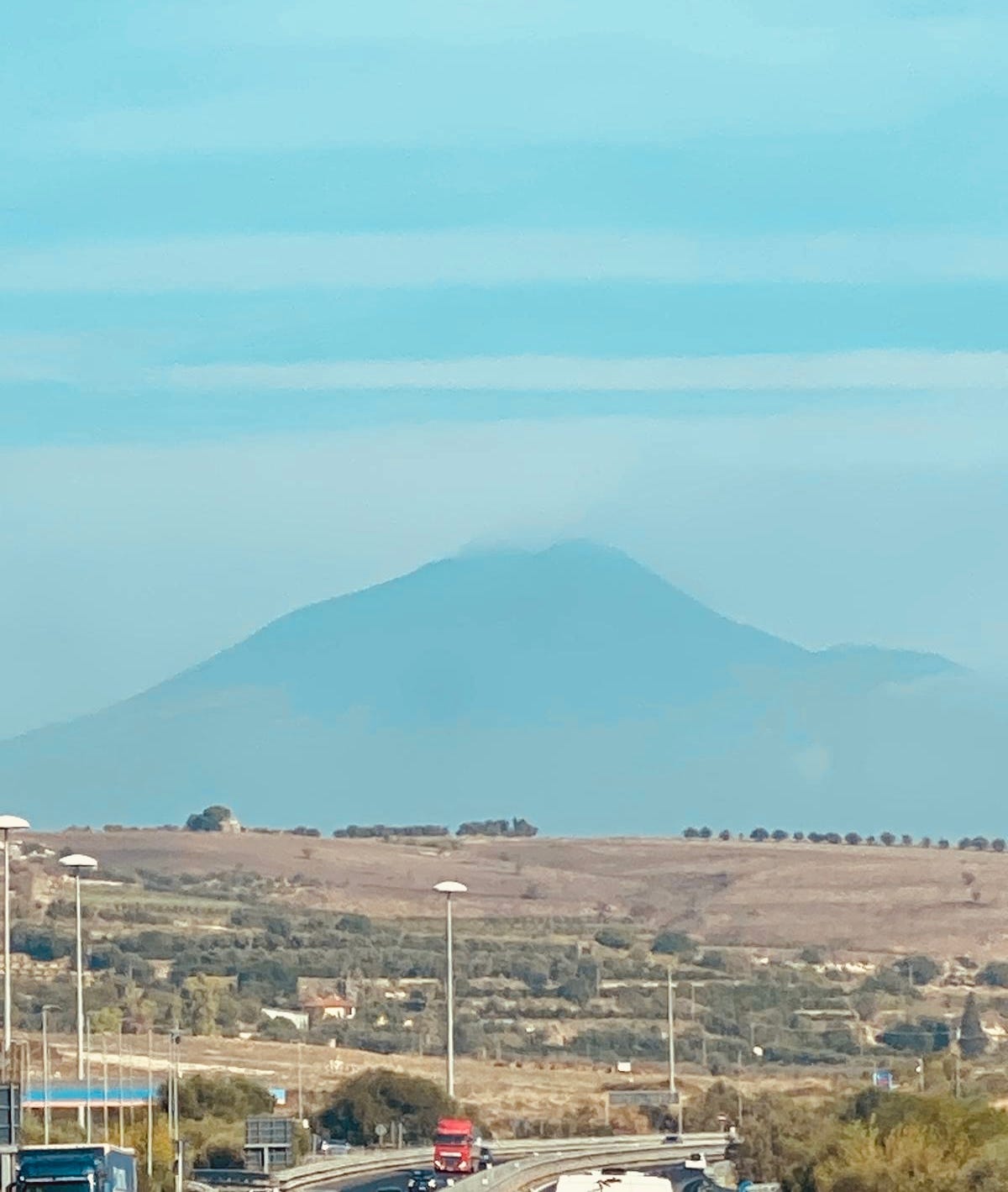 We did however grab a coffee and tried the local Arancini, which was delicious! But while looking out across the volcanic landscape, within an hour the mountain had disappeared completely behind thick cloud and fog.