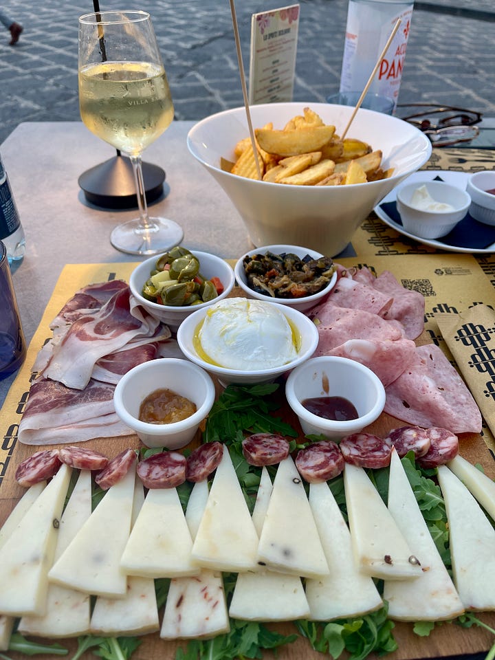 Plus our dinner came with unexpected entertainment: a local crooner with a speaker kicked off a set with the old UK Cornetto advert song otherwise known as O Sole Mio! With a fountain behind him, a balmy evening and a plate of Tagliere, it was all very authentic and fun!