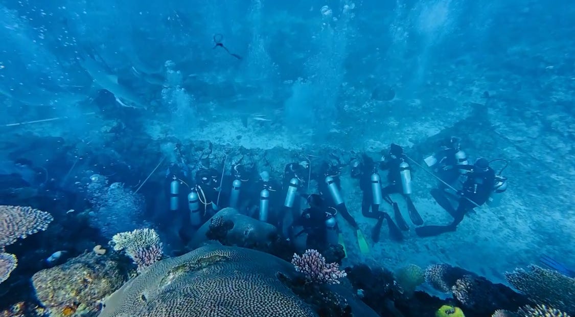 As we reached the top of the reef for our three-minute safety stop, something shifted.
