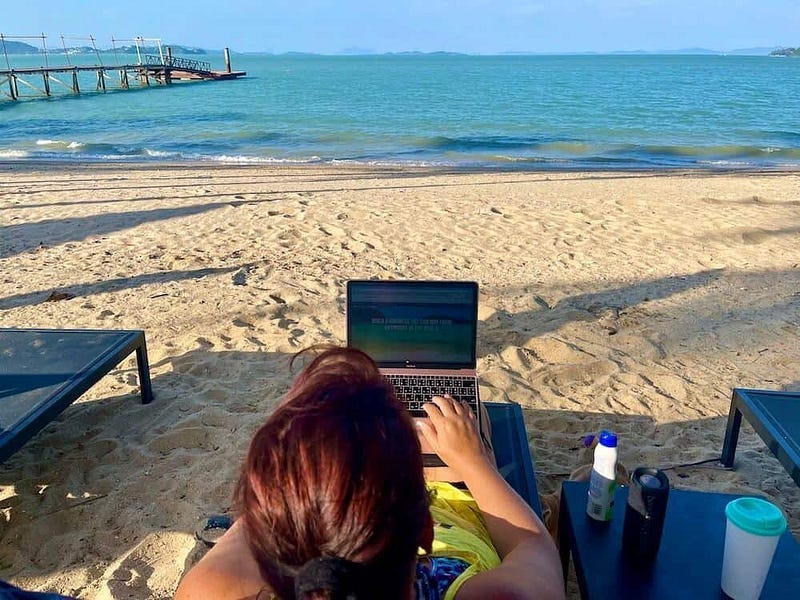 Imagine instead (my life); you’re traveling the world (post covid) and your office for the day is the beach!