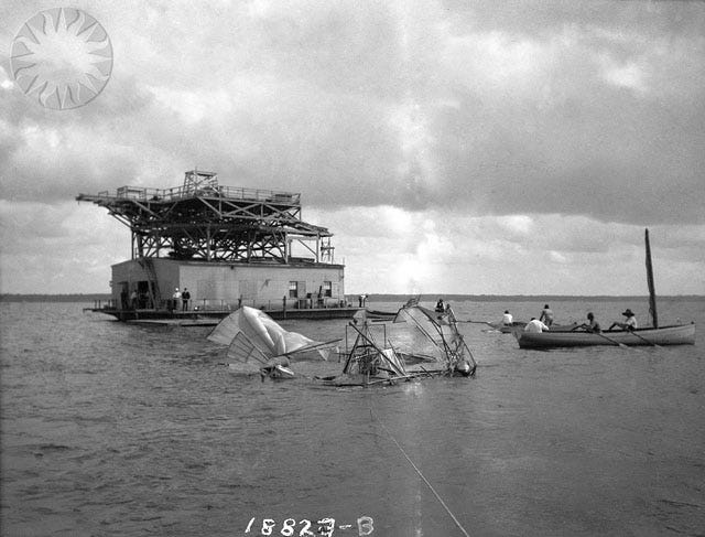 The problem was that he never actually got it off the ground. When he finally did attempt a launch, his aircraft nosedived into the Potomac River, sinking along with his reputation.