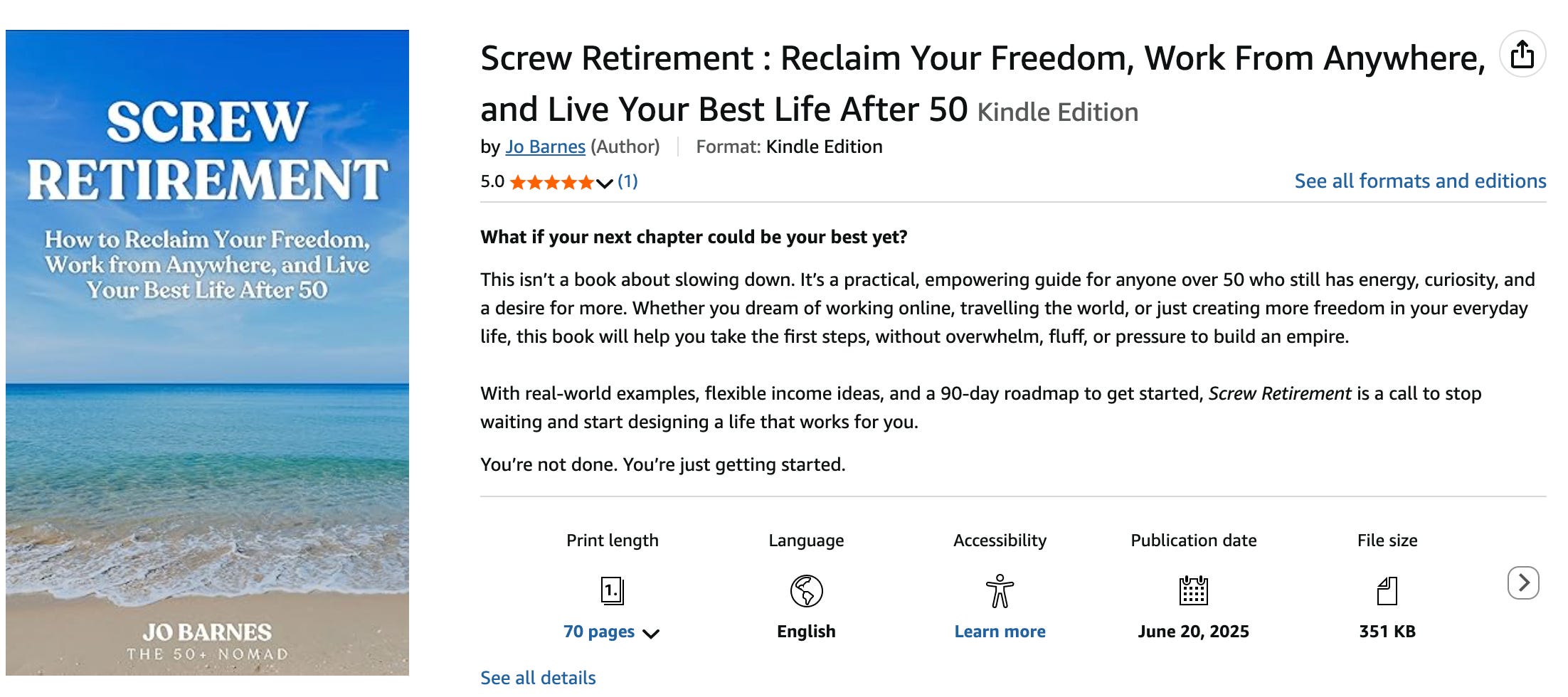 When I got home, I hired a guy on Upwork to turn it into a Kindle file (KPF), which I uploaded with a cover I created on Canva. That was it. No big team. No dramatic launch. Just small, doable steps.
